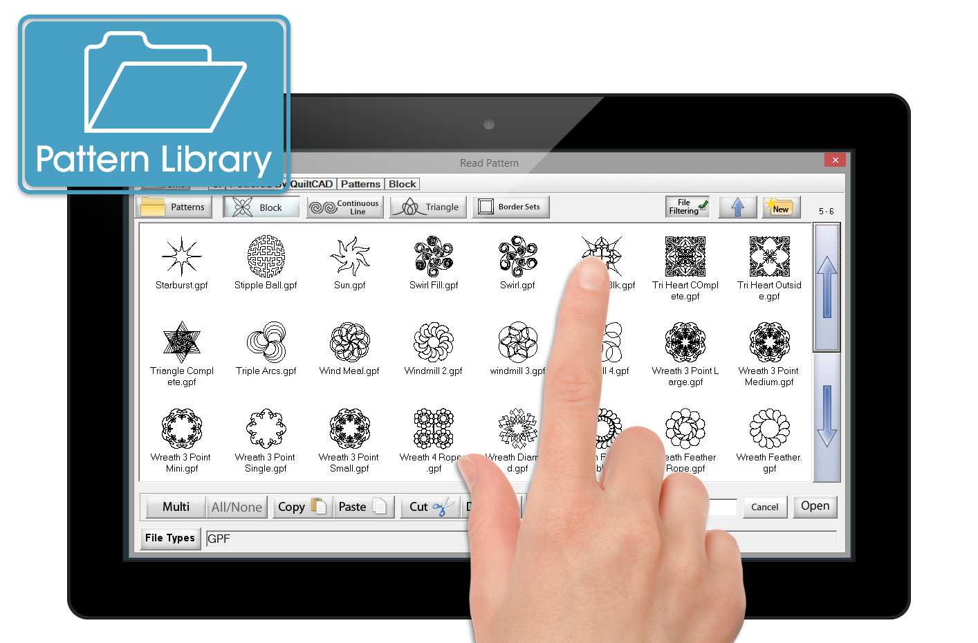 QCT6 Pro – Unlock full design freedom. Create and edit your own patterns, trace from photographs, and design everything from simple blocks to intricate pantographs.